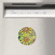 Imagem de uma pintura original. Estes produtos são impressos com texto e letras vibrantes em fundo, e pintados girassóis em primeiro plano. Uma impressão moderna do estilo Art Nouveau.