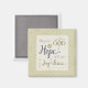 Construindo verso das escrituras dos romanos às 15:13, "Que Deus da Esperança te preencha com toda a alegria e paz" em um estilo de tipografia contemporânea com cores mudas. Projetado em memória de Kim.