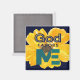 Belo design gráfico, cor d'água, pano de fundo amarelo com as palavras "DEUS FAVORS ME" - tudo num fundo azul marinho escuro.