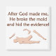Depois que Deus me fez, ele quebrou o molde e escondeu as provas. Design de humor engraçado com imagem de manequim humano quebrada, criada por Briana Blair.