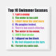 Aqui estão as dez maiores desculpas para nadar por não treinar ou nadar duro o suficiente. presente de excelente para seu nadador ou treinador de natação. O treinador de natações ouviu todos eles!