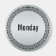 Cinzas de aparência metálica e gráfico em círculo negro para lembretes diários de organização para casa ou escritório. Este ímã organizador é para segunda.