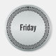 Elemento de círculo de aparência metálica para lembretes diários de organização. Este ímã o ajuda a organizar as tarefas e lembretes de sexta-feira.