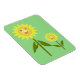 Este incrível ímã apresenta uma imagem design gráfica de um girassol amarelo bonito com um caule verde e folhas e girassóis amarelos brilhantes. O girassol-mãe tem olhos bonitos e um sorriso no rosto. Há um girassol menor ao lado da flor-mãe e sua folha está tocando a folha do girassol infantil oferecendo amor e apoio. Uma design para qualquer mãe no Dia de as mães.
