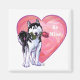 Parada Animal Romântico Husky Siberiano Cão Personalizado Dons de Coração e Amor, cartas, e acessórios trazidos para você pela Imagine isso! Design apresenta nossa divertida trabalho de arte de um Rouco preto e branco segurando um rosa bonito na boca com corações roxos, vermelhos e cor-de-rosa atrás pintados digitalmente pelo artista infantil, Traci Van Wagoner. Este doce cão apaixonado por design é um presente perfeito para o Dia de os namorados, o seu aniversário, para propor casamento de uma forma divertida e original, ou apenas para dizer, eu te amo. Puta!