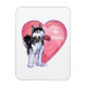 Parada Animal Romântico Husky Siberiano Cão Personalizado Dons de Coração e Amor, cartas, e acessórios trazidos para você pela Imagine isso! Design apresenta nossa divertida trabalho de arte de um Rouco preto e branco segurando um rosa bonito na boca com corações roxos, vermelhos e cor-de-rosa atrás pintados digitalmente pelo artista infantil, Traci Van Wagoner. Este doce cão apaixonado por design é um presente perfeito para o Dia de os namorados, o seu aniversário, para propor casamento de uma forma divertida e original, ou apenas para dizer, eu te amo. Puta!