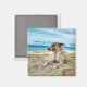 Imã Dia de Relaxamento do Cão na Praia, na Areia Oceân