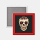 Um design do estilo do crânio de açúcar para o Dia dos Mortos - Dia De Los Muertos. Crânio com corações e flores, rosas vermelhas, sobre fundo preto e vermelho.