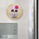 Este design bonitinho do artista Jeff Bartels apresenta uma pequena coruja de neve com grandes olhos pretos e um rosa solteiro na cabeça. Linhas giratórias e padrões de pontos enfeitam a pequena coruja branca na tradição do Dia dos Crânios de açúcar Mortos. O pássaro está sentado com os pés ao lado um do outro e está olhando para frente com a cabeça ligeiramente inclinada para um lado. A cabeça grande e o corpo pequeno, juntamente com os detalhes das penas peludas, criam uma combinação bonita de desenho animado e aparência realista. A coruja pequena se senta sobre um fundo texturizado que dá ao padrão um belo olhar vestido e envelhecido. Este dia único e adorável do design morto é perfeito para todos os amantes de os animais.