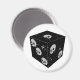 O desenho animado estimula o desenho de crânios em um dado. Ímanes personalizados. Ideia do presente.