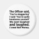 Para o amante sarcasmo em todos nós. Veja esta bruxa: "O Oficial disse que você está estupefando. Eu disse que você é muito bonito. Rimos e Rimos. Preciso de dinheiro de fiança. design no roupa e presentes.
