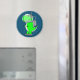 Um desenho animado e bonito, t-rex! Design de desenho original. Versão astronauta. Ímanes personalizados. Ideia de presente para crianças.