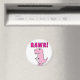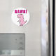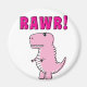 Um desenho animado e bonito, a cor-de-rosa. Rawr! Ímanes personalizados. Design de desenho original. Ideia para amantes de dinossauros.