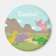 Um ímã de dinossauro bonito e colorido que as crianças podem usar para anexar seus desenhos de dinossauro à geladeira. Vem com dinossauros cartoon, um Brachiosaurus amarelo, um Tricerátopo roxo, um Stegossauro verde e um Pterodactylus rosa. Fundo de montanhas e nuvens. Este design atraente é excelente para crianças que amam temas jurássicos, pré-históricos ou dinossauros. Personalize com o nome da criança para torná-lo mais especial!