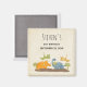 Ímã para salvar a data com um design fofo apresentando 4 dinossauros. 2 estão voando e 2 estão no chão. Criado com aquarelas.