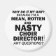 Porque É Que É Assim? Porque sou um diretor de Coro Malvado, Rotten e Nojento! Alguma Pergunta? Às vezes é hora de acabar a discussão e fazer as coisas do seu jeito!