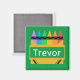 Um ímã personalizado e colorido para as crianças é excelente para salas de jogos e áreas de escolarização para casa. Design apresenta uma caixa de giz dividido com espaço para personalizar com o nome da criança no centro, em fundo verde.