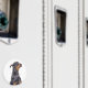 Arredondar ímã você escolhe o tamanho. Resgate Doberman dando um olhar sorrateiro no fotógrafo pedindo um tratamento para ficar bonito. Foto original com direitos autorais de Deb Simon Photoographic.