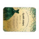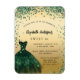 Um convite magnético moderno, na moda e glamouroso para uma doce festa de aniversário 16, 16. Na frente: Um fundo de ouro falso com um confete verde, um vestido verde esmeralda. O nome é escrito com um moderno estilo escrito à mão. Personalize e adicione os detalhes da sua festa.