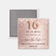 Para um doce elegante 16, 16 anos. Uma cor de fundo rosa dourada. Decorado com pó de brilho falso. Personalize e adicione um nome/idade e uma data. Salvar a data é escrito com um script de estilo moderno, escrito à mão, com alternâncias. O número 16 é escrito com uma fonte no estilo do balão.