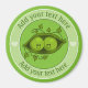 Juntos, dentro a cápsula verde são duas ervilhas adoráveis. Cada ervilha tem pontos para os olhos e um sorriso alegre. Ao redor da cápsula estão vinhas e folhas verdes. O design é colocado dentro a um círculo verde. Ao redor da borda, superior e inferior são modelos para adicionar seu próprio texto. O fundo é verde com bolinhas minúsculas.