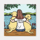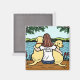 Doce dois Labradores Amarelos e ímã mãe (com cabelo mais comprido). Lindos Laboratórios Amarelos e sua mãe humana estão descansando bem no lago. O que eles estão conversando? Bons presentes para amantes de cães que amam Labrador Amarelo! Criada por Naomi Ochiai.