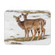 Dois veados dão ao fotógrafo uma olhada de perto em seu lugar de capim em um campo de descongelação de primavera.