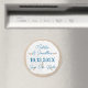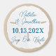 Imã salve a data de areia personalizada. A forma redonda se assemelha a um dólar de areia com uma foto próxima no centro e é perfeita para um casamento sobre o tema da praia. Adicione o seu próprio texto na fonte do script preto.