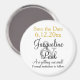 Salvar a data e a data do casamento são escritas em tipografia dourada contra fundo branco. Insira os primeiros nomes do noivo e do noivo no script preto. Designs de TamiraZDescarametria.