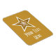 Design moderno com ouro "brilhante" e estrela branca sobre fundo amarelo escuro. Imã de geladeira com um design personalizável para você personalizar com seu próprio texto, imagens e ideias. Note que esta é uma imagem impressa criada usando fotografias originais e técnicas digitais, que ela não brilha ou contém faíscas reais.