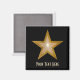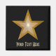 Design moderno com um ouro "brilhante" e uma estrela branca num fundo preto. Imã de geladeira com um design personalizável ouro, preto e branco para você personalizar com seu próprio texto, imagens e ideias. O texto pode ser facilmente alterado usando o modelo fornecido ou clique no botão 'Personalizar o texto' para fazer outras alterações. Note que esta é uma imagem impressa criada usando fotografias originais e técnicas digitais, que ela não brilha ou contém faíscas reais.
