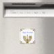 Um ímã quadrado com uma imagem de um menorá dourado num quadro de ouro com estrelas douradas de David e um sentimento de feriado azul personalizável. Veja a coleção inteira de aníches de Hanukkah na seção HOLIDAYS.