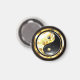 Símbolo de joias, ouro e yin yang preto em um fundo preto. Dourado yin yang.