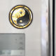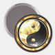 Símbolo de joias, ouro e yin yang preto em um fundo preto. Dourado yin yang.