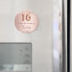 Elegante, clássico, glamoroso e feminino ímã de Save the Date para uma festa de Sweet 16, festa de 16 anos. Fundo gradiente rosa dourado e blush. Decorado com rosa dourado, brilho falso, brilhos. Personalize e adicione um nome. O nome é escrito com uma fonte moderna de letra manual em cor rosa escuro. O número 16 é escrito com uma fonte estilo balão.
