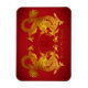 Duplo recorte de papel do Dragão de ouro chinês com o antigo ideograma chinês vermelho para Dragão no centro + "Ano do Dragão". Design no ímã de fotos flexível. Perfeito para o Ano Novo Chinês do Dragão e Aniversário (nascer pessoas no Ano do Dragão).