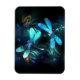 Duas libélulas transparentes, luminosas, turquesas, desenhadas artisticamente sobre fundo noturno, com algas e vagalumes luminescentes do lago. Dragonfly brilhante.