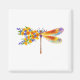 Pintura artificial, libélula floral em laranja e roxo contrastantes com papoila amarela, brilhante e florescente da Califórnia e flores silvestres azuis em fundo branco.