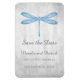 Elegante e simples, salve o ímã flexível de data que apresenta uma libélula azul contra um fundo de nuvens de cinza. Esta design é uma escolha única para anunciar um casamento moderno. Fácil de personalizar com seus detalhes de casamento. Clique em "Personalizar" para encontrar mais opções de personalização.
