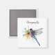 pintura aquosa de uma bela libélula colorida, segurando-a num galho sobre fundo branco