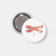 Articulado artificialmente, ouro, libélula joalhada com vermelho e asas decoradas com cereja japonesa vermelha, florescente e joalhada sobre fundo branco. Dourada Dragonfly.