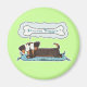 Dachshund, um belo desenho animado, está na cama e vislumbra um osso grande com as palavras "sonho maior". Boa mensagem positiva para lembrar alguém de não colocar limitações nos seus sonhos. Design original de Christie Black of Creations do Coração.