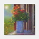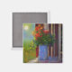 Este belo ímã apresenta um vaso impressionista de flores na varanda da frente.