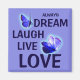 Este ímã tem uma fotografia de borboletas com as palavras "Sempre sonhe, ria, viva, ama!"