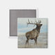 Ímã de Touro Alce Macho Lucky 13. Este enorme alce macho antigo ostentando treze pontas em sua enorme cornamenta está chegando ao fim de seus anos "primordiais", mas ainda corta uma figura intimidadora enquanto ele se pavoneia orgulhosamente sobre as planícies nevadas.