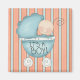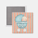 Este ímã apresenta um bebê azul entorpecente com um bebê a espreitar para fora e as palavras "É um Rapaz!" no buggy. Tem um fundo listrado.