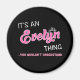 É uma coisa da Evelyn que você não entenderia - tipografia de primeiro nome em fontes mistas brancas e rosa. O nome cor-de-rosa na fonte decorativa é enquadrado em branco e tocado com uma coroa branca.