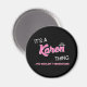 É uma coisa Karen que você não entenderia - tipografia de primeiro nome em letras mistas de letra branca e rosa. O nome cor-de-rosa na fonte decorativa é enquadrado em branco e tocado com uma coroa branca.