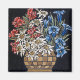 Um cesto ilustrado de flores alpinas: edelweiss, enzian e rosa alpen enchem uma cesta de fundo preto.