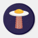 Vetor cartoon ilustra um delicioso e ensolarado OVNI fritado de ovo com um raio trator de fatia bacon delicioso. Palavras-chave: ovo, bacon, café da manhã, OVNI, alienígena, ensolarado, lado, desenho animado, espaço, extraterrestre, comida, fofo, gema, ficção científica, ficção, marciano, humor, carne, porco, rapto